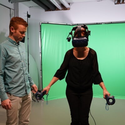 De tracking-sensoren kunnen tot op de centimeter nauwkeurig een ruimte van 6x6 meter volgen. De sensoren zijn inbegrepen in deze set en dien je op voorhand af te stellen. De volledige set bevat: bril, sensoren en statief, 2 controllers om in de hand te houden en de nodige kabels om alles aan te sluiten. Wij beschikken over een krachtige laptop ter plekke om de VR-omgeving op af te spelen.